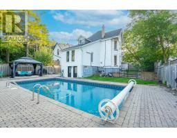 Stunning 4-Bedroom Century Home in Historic Downtown Stouffville. Experience the perfect blend of timeless charm and modern luxury in this beautifully maintained 4-bedroom century home, ideally located in the heart of historic downtown Stouffville. Step inside to soaring 10-foot ceilings on the main, a spacious living and dining room with a cozy gas fireplace, and a separate family room ideal for gatherings and entertaining. The fully renovated gourmet kitchen is a chefs dream, featuring quartz counters, a large island, a 48" GE Monogram Gas Range, and an XL Samsung fridge with water dispenser. Hardwood and porcelain floors flow throughout, adding warmth and elegance to every room. This home has been thoughtfully updated with numerous upgrades, including a newer boiler, air conditioning, updated electrical, new roof, driveway, powder room, and some windows and doors. A dedicated home office and separate pool change room add convenience and functionality. The backyard is a true retreat with a beautiful rectangular pool (newer liner, pump, and heater), a gazebo with entertainment area, and a large lot backing onto park space and siding onto a Church. All this within walking distance to shops, restaurants, the leisure center, and the GO Train making this home as practical as it is charming. (id:61594)