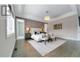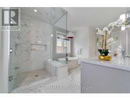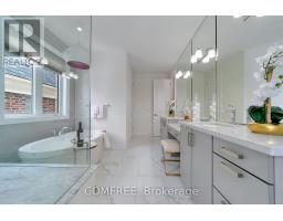 Well-appointed Sorbara-built residence situated across from Copper Creek Golf Club in Kleinburg. This 3,516 sq. ft. two-storey home offers 10-foot ceilings on both floors, filling the interior with natural light and creating a spacious atmosphere. The main level includes a private office and access to a covered porch. A chefs kitchen features a large Cambria island, custom cabinetry, premium finishes, a walk-in pantry, and a servery. The primary suite includes a spa-inspired ensuite and walk-in closet, with all additional bedrooms also offering walk-in closets. Additional highlights include a 3-car garage with epoxy flooring, interlocked driveway with parking for 9 vehicles, and a composite and glass deck suitable for outdoor dining. The lot measures 60 x 117 ft., with 26 mature cedar trees surrounding the property, a pool-size backyard. (id:61594)