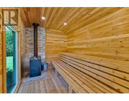 Welcome to 19 Palace Arch Drive, a turnkey ranch bungalow in prestigious Princess Anne Manor, situated on a premium 80 x 137 lot backing onto the clubhouse of world renowned St. Georges Golf Club. Offering over 4,456 sf of finished living space (2,346 sf above grade), this home has been meticulously renovated with high-end finishes. The main level features a foyer with heated floors & multiple closets, grand living room with a gas fireplace, pot lights, crown moulding and west-facing front yard views, dining room with floor-to-ceiling windows with backyard vistas and a walkout to the deck, open concept chefs kitchen with quartz counters, custom cabinets, oversized island & premium appliances, rare family room with gas fireplace, pot lights, hardwood floors, huge windows and a walkout, serene primary suite with wall-to-wall closets, picture window overlooking the backyard and a lux 4-piece ensuite with heated floors, soaker tub and large glass shower, 2 additional well-appointed bedrooms and a convenient powder room. Expansive, finished lower level with a versatile gym/office, massive rec room with chic gas fireplace and German wide-plank laminate floor, modern 3-piece bath with heated floor, an additional bedroom, laundry room, wine room, walk-up to the backyard and ample storage. Private backyard oasis with superb 3-level cedar deck, interlocking patio, custom cedar sauna & shed, landscaped gardens, mature trees, a sweeping lawn and no rear neighbours! Double garage & private driveway- parking for 6+ cars. Brimming with updates- Pella windows, poplar trim & crown moulding, AC (2022), furnace & water heater (2017), roof & eaves (2017), smart thermostat, 200 AMP electrical, new fireplaces, landscaping &more! Steps to St. Georges Golf Club, Princess Anne Park, near top schools- St. Georges, John G Althouse, Richview CI & St. Gregory and shopping at Thorncrest Plaza & Humbertown. Easy access to HWYs & TTC. Open Houses Thursday 12-1:30; Friday 5-7; Sat & Sun 2-4! (id:61594)