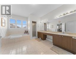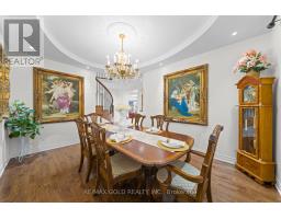 Exquisite Home offering approx. 3,700 sq. ft. of refined living space, featuring 9-ft ceilings on both floors and rich hardwood throughout. A grand double-door entry opens to a breathtaking open-to-above foyer with an elegant chandelier. The gourmet kitchen is beautifully appointed with granite countertops, designer backsplash, premium maple cabinetry, a spacious center island, built-in cooktop and oven, and stainless steel appliances. Expansive principal rooms include gas fireplaces in both the living room and private office, ideal for elegant entertaining and everyday comfort. The luxurious primary suite offers a spacious walk-in closet and a spa-inspired ensuite bath, complemented by four generously sized bedrooms and the rare convenience of three full bathrooms on the upper level. California shutters throughout enhance sophistication and privacy. Additional highlights include pot lights on the main floor and exterior, a separate entrance, no sidewalk for maximum parking, an interlocked driveway and patio, and a beautifully landscaped backyard with shed-an exceptional blend of luxury, space, and functionality. (id:61594)
