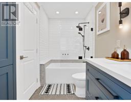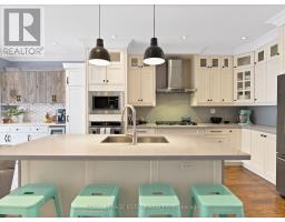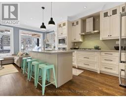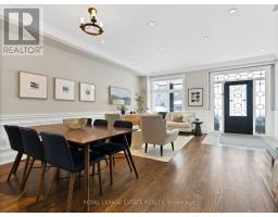 This impeccably renovated 4-bedroom, 5-bathroom family home is an entertainer's dream, set on a gorgeous tree-lined street and ideally located near top-rated schools, parks, cafes, gyms, and transit, and finished top to bottom with high-end craftsmanship. Featuring two floors of custom-finished hardwood, high ceilings, wainscoting, and plaster crown moulding, the home offers a chef's kitchen with Caesarstone countertops and backsplash, newer fridge, dishwasher, and microwave, and a walk-out from the family room to a composite deck with lifetime warranty. The thoughtful layout includes second-floor laundry, two skylights, one fireplace with a second roughed-in in the basement, and custom built-ins in the primary bedroom and ensuite, guest bedroom, and living area. Recent upgrades include a renovated primary bathroom (2023), renovated main-floor powder room, new washer and dryer (2024), new AC unit (2024), making this move-in-ready home the perfect blend of luxury, comfort, and family living. (id:61594)
