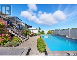 Welcome to this one of a kind bungalow, in the sought-after community of Perthmore, just a short walk from all the amenities Perth has to offer. This home is elevated above the rest, offering breathtaking attention to detail. Built in 2019, this home has been thoughtfully updated with tasteful design upgrades. The upstairs living room fireplace features a stunning marble slab, floor to ceiling board and batten, and custom sconces, while the downstairs built in includes a sleek 55-inch fireplace unit with 24-inch grey, fluted style tile, including cabinetry on either side, all with ambient picture frame lighting. The updated kitchen boasts quartz black countertops and a floor-to-ceiling marble backsplash, a coffee nook offers a marble ledge and extra cabinetry. Custom made hood range with oak trim, new light fixtures, tasteful wallpaper, and custom details throughout the home add both style and functionality, making this home a true showpiece. The main floor offers two bedrooms, including a primary suite with ensuite bathroom, walk-in closet, and direct access to the back deck with a pergola. Additionally, there is a convenient laundry area and a second bathroom featuring elegant floor-to-wall treatments. The finished lower level is more than just extra living space it's a beautifully designed area, stunning built-in units, a custom bar, an additional large bedroom, and a bathroom. The backyard is a private oasis with two 10x10 stone patio areas for barbecuing and seating. Its fully fenced-in with no rear neighbors, offering ultimate privacy. The heated chlorine pool features brick interlocking and a luminating waterfall, surrounded by lush hydrangea trees, boxwoods, and vibrant spring blooms like tulips and daffodils (over 100 planted). The Boston ivy climbs the pergola, adding whimsical touch. The front yard is beautifully landscaped with two large perennial gardens, creating a welcoming entrance. Your heart will fall in love with every space in this home. (id:61594)
