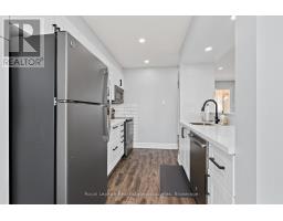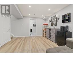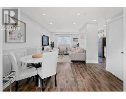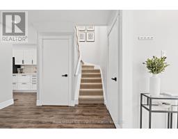 Fully renovated from top to bottom and move-in-ready townhome is a standout in its community. With stylish finishes, a finished basement, and low-maintenance living, this 3-bed, 3-bath, and 2-parking home is ideal for first-time buyers, downsizers, or investors seeking turn-key value. The welcoming foyer features stylish tile flooring (2020), a 2-piece bathroom, and direct access to the garage. The open-concept main level features laminate flooring, pot lights (2020), and elegant wainscoting throughout. The charming kitchen features stainless steel appliances, quartz countertops (2020), a ceramic backsplash, a walkout to the deck (2021), and a quiet backyard with no rear neighbours. Upstairs offers new laminate flooring (2023) and three well-sized bedrooms. The primary bedroom features a wall-to-wall closet and a large window overlooking the backyard. The second bedroom also overlooks the backyard and includes a closet organizer and pot lights, while the third bedroom, overlooking the front yard, offers a built-in double closet and a large window. A fully renovated 4-piece bathroom (2020) and a linen closet complete this level. Enjoy the fully finished renovated basement (2020), which adds valuable living space with a comfortable rec room, a modern 3-piece bathroom (2022), and a finished laundry room (2020) with shelving, a laundry sink, and additional storage, including a built-in closet and finished storage under the stairs. Maintenance fees include visitor parking, snow removal, exterior maintenance/landscaping, roof, windows, common elements, and parkette. Located close to schools, parks, shopping, transit, and more! (id:61594)