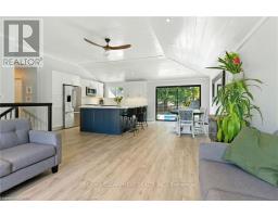 Welcome to 19 Wallace Place, this 3+1 bedroom home sits on a quiet court and has been extensively renovated to combine style, comfort, and functionality. The interior features bright, open-concept living with vaulted ceilings, updated vinyl flooring, and a custom kitchen with 2022 appliances. Large patio doors lead to a fully fenced and private backyard with a saltwater inground pool. The lower level includes a spacious recreation room, fourth bedroom, bathroom, and mudroom/laundry area with a separate entrance and a garage door featuring a built-in pedestrian door, offering potential for an in-law suite. Additional structures on the property include a bunkie and a shed, which could be converted for additional use. The property features strong curb appeal, ample parking, and a convenient location close to parks, schools, shopping, and the Grand River. (id:61594)