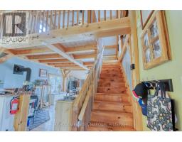 50 acre off grid home sitting high in the woods of Devil Lake area and overlooking the stunning scenic countryside. This 1 bdrm home has everything you could want to be completely self-sufficient and raise your own small livestock as well. Set up to be efficient and cost effective, this home offers convenience because all the work has been done to set great systems in place. From the multitude of storage buildings to small livestock sheds, to fencing for predator protection to loads of wood to use on your own property for building and heat sources, this is a true gem of a place for anyone wanting a year round getaway or smaller home to enjoy. There is loads of natural lighting flooding in every window making every season a beautiful sight out every window. Excellent turkey and deer hunting right from the front steps and the gardens here are incredible! Join the local assoc. and you can use the boat launch 1.5kms away to access Devil Lake! 16 gel batteries, 6 solar panels, 48V system with built in Generac that charges up the entire system making it simple to use and easy to maintain. propane stove, propane fireplace along with wood fireplace make options for winter heating simple and budget friendly. (id:61594)
