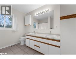 This unique family home is set on a rare, expansive in-town property beside the picturesque Nottawasaga River, offering the perfect blend of space, comfort, and natural beauty. With over 3,400 square feet of finished living space, this two-storey residence is ideal for multigenerational living, providing a flexible layout across three fully equipped levels. The main floor welcomes you with a bright and airy living room that flows seamlessly into an open-concept space, featuring a large dining area and a spacious kitchen with a walkout to the patio and generous backyard. A good-sized bedroom and full bathroom complete this level, making it ideal for guests or family members seeking single-level convenience. Upper level includes primary bedroom with his and hers closets, a walk-through leads to a cozy den, perfect for a home office or private retreat and a full bathroom. 2 additional spacious bedrooms are found on this level, along with a second kitchen and living room with a walkout to an upper deck that overlooks the yard and provides access down to the outdoor space. The finished basement adds even more value, featuring a third eat-in kitchen, a full bathroom, a large bedroom with a walk-in closet, and a massive living room - ideal for an in-law suite or independent living space. Direct inside entry from the double car garage enhances everyday convenience. Recent updates include: Shingles (2015), Windows with transferable lifetime warranty (2019-2020), Patio doors (2020-2021). Step outside and enjoy the peace and beauty of your private backyard oasis, with the river right at your doorstep - perfect for nature lovers and fishing enthusiasts. Located just minutes from schools, parks, and shopping, and a quick drive to Base Borden, Alliston, and Barrie, this home truly offers the best of both worlds: serene living with urban amenities close by. (id:61594)