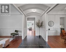 Welcome to this truly spectacular Mineola home. A true masterpiece nestled on a sprawling 90x150 ft lot on the highly desirable Maplewood Rd. An extraordinary commitment to craftsmanship and attention to detail, this residence offers 4,405 sqft of above-grade refined living space. Step through the gorgeous Mahogany entrance door and be immediately captivated by the breathtaking barrel vaulted foyer, adorned with exquisite plaster moulding. The main floor exudes elegance and functionality, featuring a beautiful family room with a stunning built-in gas fireplace, creating a warm and inviting atmosphere. Culinary enthusiasts will be delighted by the breathtaking eat-in kitchen, complemented by an adjacent butler's kitchen, perfect for entertaining. For seamless indoor-outdoor living, a bright, fully enclosed sunroom off the kitchen provides an ideal space for entertainment and leisure.The luxurious main floor primary bedroom suite is a private oasis, boasting a large walk-in closet with organizers and a lavish 5-piece spa-like ensuite, designed for ultimate relaxation. An additional bedroom and dedicated office space on the main floor offer exceptional convenience and versatility. Ascend to the second floor, where you'll find four generously sized bedrooms and two well-appointed bathrooms, providing ample space for family and guests. The finished lower level is an entertainer's paradise, featuring above-grade windows that flood the space with natural light. Enjoy a round of mini-golf, challenge friends to a game of billiards, or gather around the sleek wet bar, this basement is designed for endless fun and recreation, easily walk-up to the private backyard oasis. This must-see property is ideally located close to top-rated schools, lush parks, quick access to major highways, the Go-Train, and the vibrant Village of Port Credit, with its array of renowned restaurants and boutique shopping. Experience the pinnacle of luxury living in Mineola. (id:61594)