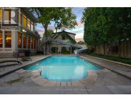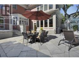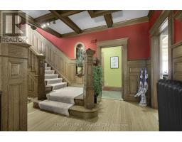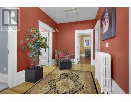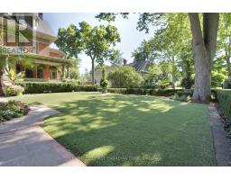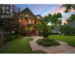 The two-and-a-half-storey red brick house at 191 Cheapside Street reflects a typical late Edwardian style, but on a grander scale that allows for striking architectural flourishes. Hallmarks of the style include a hipped roof with cross gables, tall corbelled brick chimneys, a large front gable over a projecting wall, and a broad porch that wraps around the west side. Notable features include broad eaves with large modillions, intricate half-timbering in the gable apse, a Palladian window-door opening onto a balustraded balcony, and an octagonal Scottish dormer with sash windows. The porch features Ionic columns with limestone bases and red sandstone trim, and a balustrade with narrow balusters.The front entrance is particularly distinctive, with bevelled glass in the oak-framed door, sidelights, and elliptical transom, topped by a cylindrical bay window. These features are highlighted against a purposefully subdued backdrop: red brick with red mortar, minimal stone contrast, and orderly sash windows. Red sandstone trim appears in window sills, voussoirs, and along the limestone foundation.Additions to the house, including a flat-roofed sunroom and a 2008 rear extension, are faithful to the original design, replicating key details such as brick colour, eaves, and modillions. The property benefits from its setting on the wide, boulevard-lined west end of Cheapside Street. The current owners have developed a formal Renaissance garden in front, enclosed by a metal fence and visually linked to the house by shared architectural motifs like half-timbering. A driveway on the west leads to a two-car garage that echoes the main houses design.The house sits approximately 7.25 metres from the front property line and 22.5 metres from the street. (id:61594)