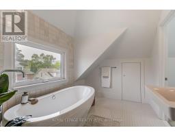 Beautifully restored 1921 home nestled in the heart of the coveted Delta West neighbourhood, steps from Gage Park, Niagara Escarpment, and vibrant shops & eateries of Ottawa Street North. This 2.5-storey home is a rare blend of heritage charm and thoughtful, high-quality updates. Lovingly renovated by the current owners in 2021, this 4BR, 3 Bath home showcases original features such as refinished wood floors, antique interior doors, stained-glass windows; glass pocket doors; the original fireplace (now capped & insulated) & more!. At the same time, it offers the comfort and efficiency of modern upgrades: triple-pane windows; updated electrical panel; new roof; fully updated plumbing, pot lights; completely rebuilt front porch; spray foam insulation.The fully reno'd kitchen combines vintage flair with smart design, including marble counters; large modern windows; panelled, European-style appliances; ceramic hexagon floor tiles. 3 ample-size BRs on 2nd Flr, featuring wood flrs & a bright bath that boasts an oversized glass shower/seat; and double vanity. The stunning 3rd floor primary retreat, renovated in 2023, is a true show stopper featuring, comfort, privacy, and beauty. Bathed in natural light from the enlarged canopy windows and newer skylight (2021), this airy space is well insulated and offers a wall-mounted AC/heat unit. The spa-like ensuite boasts a 6' freestanding tub, modern eco toilet, and even an electrical outlet ready for a bidet. The basement provides for in-law suite potential with a separate side entrance and rebuilt staircase, enlarged modernized 3pc bathroom, new windows, pot lights; spray foam insulation; and electric baseboard heaters. The main room, awaiting your choice of flooring, is equipped with electrical & plumbing rough ins, making it easy to convert into a self-contained living space. Incl: Washer & Dryer; Oven; Stove Top; Refrigerator; Range Hood; Dishwasher. Lower level appliances incl: Fridge; Stove; All-in-One Euro Washer/ Dryer. (id:61594)