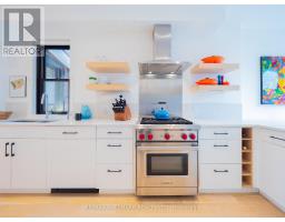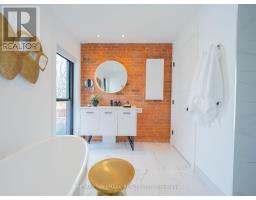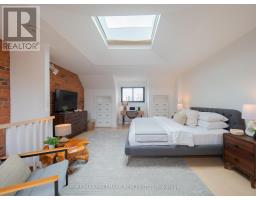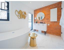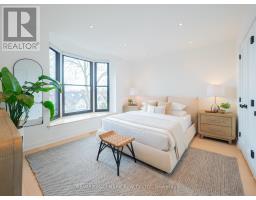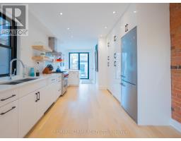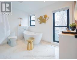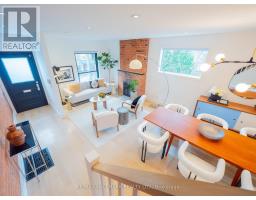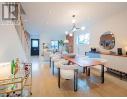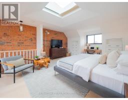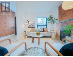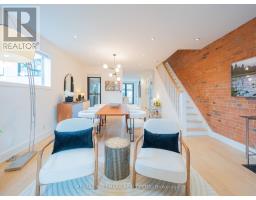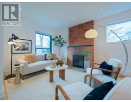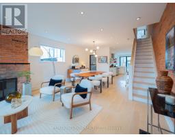 Some homes just feel different the moment you walk in. Perched up on the hill in the heart of Riverdale, this top-to-bottom renovation is the kind of place that stops you in your tracks. From the second you step inside, the open concept main floor wraps you in warmth. Exposed brick, white oak floors, a wood burning fireplace, and a perfectly placed slot window that floods the space with natural light. The kitchen is a cook's dream, quartz countertops, Miele fridge, Wolf gas range, loads of storage, and a waterfall breakfast bar where your morning coffee tastes just a little bit better. Floor-to-ceiling glass doors open onto a professionally landscaped backyard that's genuinely its own world. Private, calm, and designed to blur the line between inside and out. And with two car laneway parking and a grade-level back entry, just straight in, it's as practical as it is beautiful. Unload the groceries, roll in the stroller, or think ahead to aging parents coming to visit. It all just works. Head upstairs and you've got two generous bedrooms with white oak floors, great closet space, and one with a bay window and window seat that frames the most beautiful south-facing views of the city. The spa-style bathroom earns every bit of that description, exposed brick, soaker tub, an oversized curbless walk-in shower tiled like a work of art, and a big window letting all that gorgeous light pour in. You'll look forward to the end of a long day. The 3rd floor, The primary bedroom retreat is just another reason to fall in love with this house, Skylights, exposed brick, a king-sized bed, and a walkout to your own private rooftop deck with views that remind you exactly why you worked so hard to live somewhere like this. Morning coffee, evening wine, late nights under the stars, it's all yours. The lower level features high ceilings, a spacious family room perfect for movie nights or the kids taking over with their crew, plus a dedicated home office nook. Withrow School district. (id:61594)