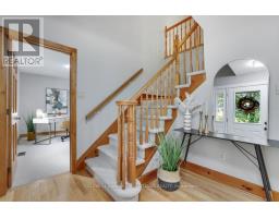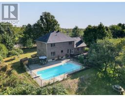 Nestled on a picturesque 26.517-acre natural oasis, this stunning all-brick family home blends timeless elegance with modern efficiency. Boasting geothermal heating and cooling, it offers both environmental sustainability and year-round comfort. Step into the bright, welcoming foyer and discover generous living spaces filled with natural light. A professional main-floor office with calming views easily doubles as a bedroom. The living and dining room sparkle with sunshine, while the open-concept kitchen and family room invite connection and comfort. Patio doors open to a spacious deck, perfect for BBQs and outdoor gatherings. The landscaped yard includes a fully fenced in-ground swimming pool, perfect for summer enjoyment. A fenced vegetable garden invites homegrown harvests. A convenient main-floor powder and laundry room completes the main level. Upstairs, the luxurious primary retreat features hardwood floors, a walk-in closet, and a 5-piece ensuite. Three additional generously sized bedrooms share a stylish 4-piece bathroom. Take a look at the second staircase, which also leads up to the second floor. The finished lower level offers an expansive recreation area, ideal for family fun or entertaining, a kitchenette in the making (electrical and plumbing have been completed, should buyers want to use it for an in-law suite). Direct access from the attached double garage connects to both the lower level and main floor, ensuring ease of entry. This remarkable property offers the best of country living with elegant indoor comfort and thoughtful outdoor features, truly a serene and sustainable family haven. (id:61594)