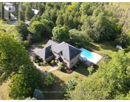 Nestled on a picturesque 26.517-acre natural oasis, this stunning all-brick family home blends timeless elegance with modern efficiency. Boasting geothermal heating and cooling, it offers both environmental sustainability and year-round comfort. Step into the bright, welcoming foyer and discover generous living spaces filled with natural light. A professional main-floor office with calming views easily doubles as a bedroom. The living and dining rooms sparkle with sunshine, while the open-concept kitchen-with abundant cabinetry, new quartz countertops and flooring-flows seamlessly into the inviting family room, creating a warm space for connection and comfort. Patio doors lead to a spacious deck, perfect for BBQs and outdoor gatherings. The landscaped yard includes a fully fenced in-ground swimming pool, perfect for summer enjoyment. A fenced vegetable garden invites homegrown harvests. A convenient main-floor powder and laundry room completes the main level. Upstairs, the luxurious primary retreat features hardwood floors, a walk-in closet, and a 5-piece ensuite. Three additional generously sized bedrooms share a stylish 4-piece bathroom. Take a look at the second staircase, which also leads up to the second floor. The finished lower level offers an expansive recreation area, ideal for family fun or entertaining, a kitchenette in the making (electrical and plumbing have been completed, should buyers want to use it for an in-law suite). Direct access from the attached double garage connects to both the lower level and main floor, ensuring ease of entry. This remarkable property offers the best of country living with elegant indoor comfort and thoughtful outdoor features, truly a serene and sustainable family haven. (id:61594)