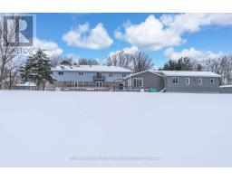 LIVE TOGETHER WITHOUT COMPROMISE ON 1.3 ACRES WITH THREE COMPLETE LIVING SPACES, AN IN-GROUND POOL & A BASKETBALL COURT! Big families, blended families and multi-generational households will immediately see the value in this layout, with three separate living zones and over 8,400 finished square feet of living space. Situated on 1.3 acres with a wooded backdrop only 5 minutes from Barrie, the backyard delivers a resort-style experience with an in-ground pool, stamped concrete patio, ample greenspace, a concrete basketball court that doubles as a winter rink, landscape lighting, an irrigation system, two 12 x 19 sheds, and a side gate offering drive access to the yard for easy boat and toy parking. The main residence features 5 bedrooms and 4 bathrooms, updated flooring, contemporary paint colours, and a functional kitchen with butcher-block counters, white cabinetry, a tile backsplash, stainless steel appliances, and an island. Upstairs, the primary retreat stands apart with soaring skylit ceilings, a generous sitting area with a fireplace, an entertainment area with a walkout to the balcony, and a spa-like ensuite with a walk-in closet and convenient access to the laundry room. The finished basement adds even more room, with a large rec room, a cozy fireplace, a solid oak wet bar, and a full bathroom. For in-law potential and added flexibility, the pool house offers 2 bedrooms, 2 full bathrooms, its own kitchen, and a bright open living space overlooking the pool, plus a 690 sq ft unfinished lower level, while the separate studio adds its own kitchen, living area, full bathroom and laundry, creating a fully equipped space for extended family, guests, or working from home. Few properties solve space, privacy and multi-generational living this cleanly, with the bonus of a backyard that feels like a destination! (id:61594)