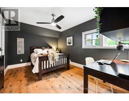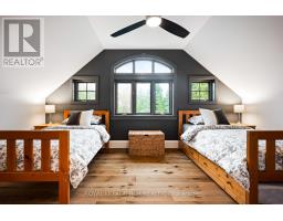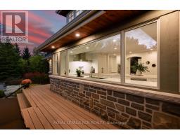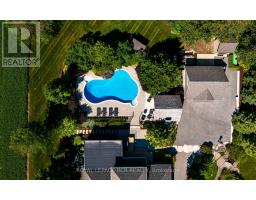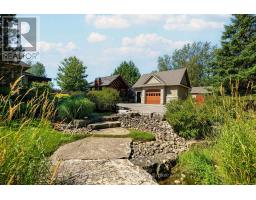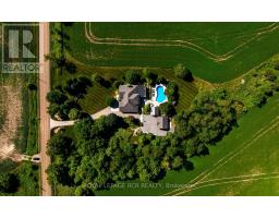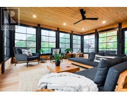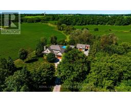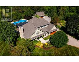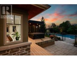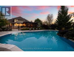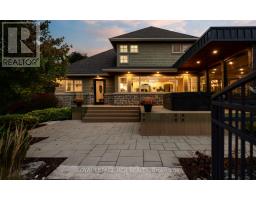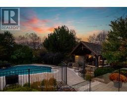 Set on 1.33 acres of private, thoughtfully landscaped grounds, this custom-built home is truly one-of-a-kind. The main floor offers a light-filled, open concept design with engineered hardwood floors throughout. The kitchen itself is a showpiece with counter-to-ceiling windows overlooking the backyard. It's complete with quartz waterfall countertops, custom cabinetry, high-end appliances, a spacious island, a butler's pantry, and a glass-panel wine room for the wine enthusiasts. The dining area flows into the living room with 17-foot ceilings and a limestone wood-burning fireplace (paired with a built-in elevator that delivers firewood right to your living space). The recent addition of a three-season screened room creates a seamless transition outdoors. The custom laundry room with built-in drying drawers adds to the main levels thoughtful design. Moving upstairs, the primary suite includes a walk-in closet and a beautiful ensuite, while the two additional bedrooms share an updated 4-piece bathroom. The finished lower level provides even more living space, has in-floor heating, two large bedrooms, a full bathroom, and an expansive recreation room ideal for family or guests. Take a step outside and entertain in the cedar cabana with built-in BBQ, or splash into the inground pool, or relax in the hot tub, or cozy up beside the propane fireplace. With a hydraulic lift, elevator to loft storage, and its very own built-in retractable bar, the detached workshop truly earns the title 'The Ultimate Mancave'. Surrounded by mature gardens and featuring a carefully updated, meticulously maintained indoors, this property has been loved in every way and is ready to welcome its new owners. (id:61594)