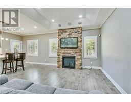 Welcome to 194 Donly Drive S, Unit 12 – an exceptional end-unit bungalow condo that combines timeless craftsmanship, luxurious upgrades, and carefree living in a peaceful community just 10 minutes from the shores of Port Dover. This stunning, custom-quality built home is perfect for those looking to downsize without compromising on space, style, or functionality. From the moment you arrive, you’ll notice the attention to detail and thoughtful upgrades throughout. The main level showcases soaring 9-foot ceilings, hand-scraped hardwood floors, elegant crown moulding, a tray ceiling with LED pot lighting in the living room, and beautiful California shutters on all windows. A gas fireplace with full-height custom stonework creates a cozy and elegant focal point in the open-concept living and dining area—perfect for both everyday comfort and entertaining. The chef’s kitchen flows seamlessly into the main living space and features a functional layout with plenty of cabinetry, quality finishes, and direct access to a private back deck overlooking a quiet green space. Being an end unit, the home benefits from added natural light and enhanced privacy. The main floor also features two spacious bedrooms, including a large primary suite complete with a walk-in closet and an ensuite bath featuring upgraded finishes. A conveniently located laundry room offers inside access to the attached double garage and serves as a practical mudroom entry. The fully finished lower level adds impressive versatility with nearly 1000+ sq. ft. of additional living space. Here you’ll find a large recreation room, a dining nook or games area, two oversized guest bedrooms, and a beautifully appointed full bathroom—perfect for visiting family, grandchildren, or long-term guests. Whether you're enjoying the private yard in summer or hosting guests all year round, this home is move-in ready and truly one-of-a-kind. (id:61594)