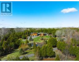 Welcome to 19421 Kenyon Concession 1, an architecturally distinctive home built in 2013 that seamlessly blends modern craftsmanship with natural beauty. Set on 75 breathtaking acres of forests, ponds, and private trails, this property offers unparalleled privacy and tranquility perfect as a primary residence, second home, or commercial retreat. The custom-built home features four spacious bedrooms and four bathrooms. Highlights include a huge walk-in pantry with an extra refrigerator, and an office overlooking the impressive rec room, ideal for productivity. The primary bedroom suite features two luxurious ensuite bathrooms, one with a soaker tub and the other with a walk-in shower, and two walk-in closets. A second bedroom, perfect for guests or teens, includes a walk-out deck with lovely views. The versatile lower level includes an in-law suite, an additional bedroom, hobby room, laundry room, and TV space. A screened-in porch lets you enjoy nature while keeping out bugs, and a hot tub hookup is already installed. Built with exotic woods and commercial-grade finishes, this home includes energy-efficient features such as geothermal heating, a backup generator, and solar potential for year-round comfort. Open-concept living areas are filled with natural light, creating an inviting atmosphere for relaxation and entertaining. Starlink is installed and the property is high-speed internet ready, making it ideal for modern remote work. A large outbuilding provides space for storage or creative projects, and the climate is ideal for hobby farming. Extensive trails lead to Loch Garry, a 900-acre recreational lake, with diverse habitats supporting rich wildlife, making this property a true haven for nature lovers. With a meticulously designed interior and stunning natural surroundings, this is a rare opportunity to experience luxury, privacy, and ecological harmony in one of Ontarios most picturesque regions. Don't miss your chance to own this exceptional home! (id:61594)