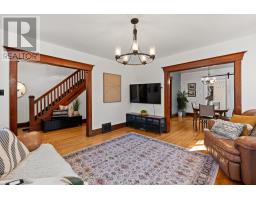 195 Church Street - the kind of home that feels like a story waiting to be lived in. This 2.5-storey red brick beauty is tucked into one of Brockville's most walkable and welcoming neighbourhoods and just steps from the paved 7 km. Brock Trail that winds past historic homes, alongside streams and through tunnels all the way down to the scenic waterfront that comes alive with festivals all summer long. The wide front porch invites morning coffees and evening conversations. Step inside onto original hardwood floors that carry throughout the home, glowing with years of character. In the living room, a painted brick fireplace anchors the space, flanked by original leaded-glass windows that cast rainbow patches of whimsy across the room in the afternoon sunshine. The dining room opens to a main floor laundry area with a back door that leads to the partially fenced backyard beyond, while the kitchen planted in the centre of the home - is filled with storage, a full pantry, and an island where breakfast is served for hungry sleepover guests. A full and updated 4-piece bath on this level cuts down the morning chaos. Upstairs, 4 comfortable bedrooms each offer their own closet, and the newly renovated 3-piece bath feels fresh and modern with its walk-in glass shower and sleek fixtures. Climb one more level to discover the loft- a warm, wood-clad hideaway with pine ceilings, two dormers, and a skylight bringing natural light across the room. Whether used as a studio, home office, or playroom, this bonus space encourages imagination and offers to provide hours of solitude. Outside, a semi-detached single-car garage and parking for 2 more off the shared driveway make life easier. Minutes to downtown shops and cafes, and a short stroll to Blockhouse Island and Hardy Park,where community events, live music, and sunsets over the St. Lawrence are celebrated . . . this home couldn't be more perfectly situated. (id:61594)