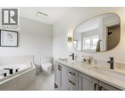 Beautifully upgraded and truly move-in ready! This turnkey 4-bedroom home on a wide, family-friendly street has been tastefully upgraded and meticulously hardscaped front to back. The exterior offers mature trees, perennial gardens, gorgeous feature walls, a striking stone front porch, and an exotic red balau deck with a hot tub surround inspired by Scandinavian spas. Freshly painted and carpet-free, the home features new hardwood flooring on both the main and bedroom levels, upgraded lighting, new bathroom fixtures, and a newly finished basement. A custom built-in desk and organized closets throughout add functionality and maximize storage space. The open-concept main floor is bright and inviting, with a wall of south-west facing windows that frame views of the stunning backyard. All this in an unbeatable lifestyle location: steps to schools, Memorial Park, the YMCA, trails, and everyday amenities. Surrounded by the Greenbelt and golf courses, with quick access to Aldershot GO and highways 6, 403, 407, and the QEW. (id:61594)