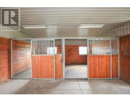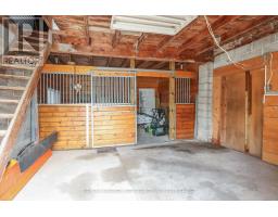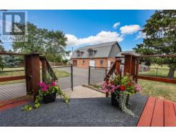 This 21+ acre parcel has much to offer. Located on Niagara's prestigious wine route just minutes from the new hospital, QEW and all amenities. It's been a working horse farm with 6 paddocks, original 45' x 25'hip roof barn with 3 stalls, a 1500 bale hay mow, sand ring and pasture. Attached 30' x 17' full on mechanics shop with hoist, overhead door, wood stove and propane heat. 40' x 20' storage shop. Separate hydro meters for the house and barn. Second 40' x 40' 5 stall barn with tack room, wash stall, hay storage, covered 40' x 12' concrete landing and attached 135' x 60' indoor arena with 2-16' overhead doors all built in 2006. These solid outbuildings could be converted to many endless uses. North end of property has a small creek, woods and overgrown trails housing all walks of wildlife from deer to turkeys. The modest bungalow is spotless and totally redone in 1992. Featuring one large master with 4 piece ensuite privileges, main floor laundry room with patio doors to L-shaped wood decking and fenced yard. Open kitchen, dining and vaulted ceiling living room. Full basement with 2nd and 3rd bedroom potential. RI bath, CA, CV, natural gas furnace, new Generac. The owners have retired and are offering this great property to a buyer who appreciates all it's worth. Present owners never registered the property through the OFA as a working farm, by doing so, the new owners could reduce property taxes drastically. (id:61594)