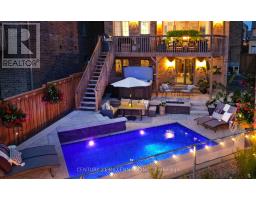 Step into timeless sophistication with this meticulously designed 4 bedroom, 4 bathroom residence that perfectly combines modern elegance with functional spaces. From the moment you enter, youll feel the homes warmth and attention to detail crafted for both family living and unforgettable entertainment. The main floor flows seamlessly from the chef-inspired kitchen with over $52,000 in upgrades to the inviting family room, where a striking linear gas fireplace with custom Cambria raw-edge shelving and mantle sets the tone. Twelve-foot patio doors frame sweeping ravine and sunset views, extending your living space to a full-length deck ideal for dining and relaxing. The primary suite is a private retreat, complete with a morning kitchen, double-sided fireplace, spa ensuite with double shower and freestanding tub, as well as a secluded deck overlooking serene ravine vistas. Upstairs, convenience meets luxury with a Cambria-detailed laundry room, while the walk-out basement awaits your vision. Designer upgrades include Mirage White Oak 6.5 in. flooring, Cambria quartz counters throughout, 7.25 in. baseboards, pot lights, upgraded toilets and elevated finishes at every turn. Step outside to your backyard oasis: a low-maintenance haven with an Avoca saltwater heated pool, Arctic Spa hot tub, designated pet garden, and professionally landscaped grounds. Nestled on a premium ravine reverse pie lot in a safe, quiet cul de sac, this home is as functional as it is breathtaking. This is not just a homeits a lifestyle statement. Truly one-of-a-kind. Show to your most meticulous clients! (id:61594)