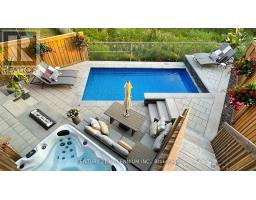 Ravine Setting | Custom Floor Plan | Resort-Style Pool. Step into refined luxury in this 4-bedroom, 4-bathroom residence featuring a thoughtfully designed custom floor plan where timeless elegance meets low-maintenance living. Backing onto a stunning ravine, this home offers an exceptional indoor-outdoor lifestyle for both everyday comfort and elevated entertaining. A custom mudroom leads to a chef-inspired kitchen with over $52,000 in premium upgrades, flowing seamlessly into the family room with a linear gas fireplace and custom Cambria shelving. Expansive 12-ft patio doors open to a full-length deck with breathtaking ravine and sunset views. The primary suite is a private retreat with a morning kitchen, double-sided fireplace, spa-inspired ensuite, and a secluded deck overlooking tranquil views. The sun-filled walk-out lower level-with bathroom rough-ins-offers space for an in-law suite, home office, gym, or entertainment area. Designer finishes, a saltwater heated pool, Arctic Spa hot tub, and professionally landscaped resort-style backyard complete this rare offering. Premium ravine reverse pie lot on a quiet cul-de-sac-truly one of a kind. (id:61594)