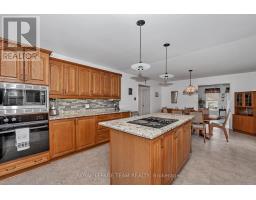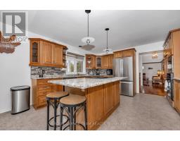 Situated on a private 10.15 acre property, this raised bungalow, originally designed to accommodate in-law or extended family possibilities, will attract those who appreciate nature, personal space and convenient proximity to shops and services. Following a wooded drive, the home emerges sitting high and stately. Beautiful outdoor spaces are abundant and ever changing . A welcoming foyer opens to the formal living room with hardwood floors. A large and well appointed kitchen with island will easily host family and friends. The kitchen boasts a generous eating area. Take your morning coffee or afternoon tea into the sunroom. Main floor laundry, powder room, walk in pantry and a bonus 3 season sunroom complete this area of the home. Family entrance leads to an oversized two car garage with basement entry. The primary bedroom has a luxurious ensuite bath and large walk in closet. In the lower level the open concept family room and well equipped kitchen are punctuated with a lovely propane stove. Private entry to the garage from this level. There is an oversized bedroom and full bath as well as a flex room for possible home office. Notable cold storage for all the food you will grow and preserve on your new estate! Idyllic yard with gazebo. Too many wonderful things to appreciate, discover and explore with this property. Propane Furnace/HWT 2025, Roof 2023, Generator 2020, A/C 2015. House floor plans in attachments. (id:61594)