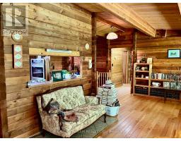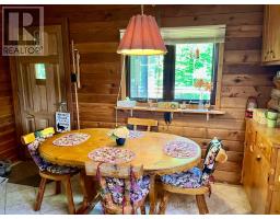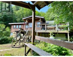 Escape to Nature Charming Square Log Home on 112 Private Acres. Discover your own private oasis with this beautiful square log home nestled on a serene 112-acre property surrounded by mature forest. Peace, privacy, and nature await in this truly unique retreat. This cozy 2-bedroom, 1-bathroom home features a spacious eat-in kitchen with direct access to a bright enclosed porch and deck, perfect for morning coffee or evening relaxation. The generous living room offers a warm, welcoming space to unwind, while the full walkout basement provides excellent potential for further development. Enjoy the tranquility of a park-like setting with a creek running right by your home. Step outside and explore the natural beauty of your surroundings, with direct access to hundreds of acres of crown land for hiking, hunting, or simply enjoying the great outdoors. For added peace of mind, the property includes a standby Generac generator keeping you comfortable and secure in all seasons. Whether you are looking for a year-round residence, a peaceful getaway, or a place to build your dream homestead, this one-of-a-kind property offers the perfect blend of rustic charm and modern convenience. (id:61594)