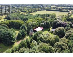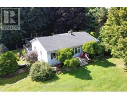 Enjoy the tranquility of 13.5 acres, set well back from the country road and featuring two serene ponds a private retreat for nature lovers. This impressive one-floor bungalow showcases an airy open layout with expansive windows framing the property's natural beauty. The massive country kitchen is a dream for both cooking and gathering, offering custom cabinetry, two large islands, granite counters, a deep farmhouse sink, a separate dining area, and premium stainless-steel appliances. The spacious living and dining rooms are bathed in natural light and highlight a beautiful stone feature wall with fireplace and built-in cabinetry. A huge deck extends from the dining room, featuring a covered section perfect for outdoor meals and relaxation, which opens to an expansive sun-filled deck overlooking the property. A welcoming front porch adds to the homes charm and creates a perfect spot to enjoy peaceful country mornings. Three bedrooms include a bright primary suite with double closets and a newly designed bathroom featuring glass-enclosed shower and heated floors. The newly finished lower level, accessable by a separate entrance as well, is a bright open-concept space with luxury vinyl wood-look floors. It features three versatile areas currently used as a bedroom sitting room, recreation room, and games room, along with a full bathroom with heated floors. The massive laundry room offers plenty of cabinetry and houses the homes water-treatment systems. This level is ideal for parties, a teen retreat, or an in-law suite. Outdoors, the property shines with natural beauty and practical amenities, including a newer 60' 40' garage with three oversized doors perfect for car enthusiasts, equipment storage, or the ultimate workshop and man-cave. Peace of mind comes with a Home Warranty covering all major systems and appliances. (id:61594)
