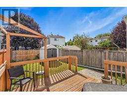 Welcome to this well-maintained 2-storey home featuring hardwood flooring throughout the main level and a bright, inviting kitchen with direct access to the backyard perfect for indoor-outdoor living. The main floor offers a functional and flowing layout, seamlessly connecting the living, dining, and kitchen areas with a cozy gas (as-is) fireplace. Upstairs, you'll find brand new carpet (2025) and three generously sized bedrooms, all with cozy carpeting and a full main bathroom. The spacious primary bedroom includes a cheater ensuite and a walk-in closet for added convenience and comfort. The full, unfinished basement provides a blank canvas and a egress window making it ready for a future bedroom or other customization and extra storage space. Step outside to enjoy a fully fenced backyard offering optimal privacy, complete with a deck for relaxing or entertaining, and a separate shed for additional storage. This home is move-in ready with room to grow don't miss your opportunity to make it yours! New eavestrough 2023 New Garage door 2024 (id:61594)