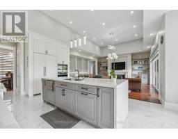 Custom-built bungalow featuring extensive upgrades throughout. A welcoming foyer with over 12-foot ceilings and double doors leads into refined living and dining areas with recessed lighting and coffered ceilings. The family room offers an impressive 14-foot ceiling with recessed and cove lighting. The chef's kitchen is equipped with premium appliances, including a gas range, oversized panel-ready refrigerator and dishwasher, a servery, and a full-size pantry. An oversized waterfall island and abundant cabinetry complete the space. Large windows with custom blinds provide exceptional natural light throughout the home.The primary suite includes a walk-in closet with custom built-ins and a spa-inspired ensuite with a designer tub, towel warmer, and glass shower. A second primary bedroom features its own full ensuite. The mudroom is thoughtfully designed with custom cabinetry, shoe storage, and a built-in bench. The walk-out basement offers the potential to add approximately 3,000 sq. ft. of additional living space. It is partially completed with drywall, electrical, and plumbing, along with provisions for heated floors. Planned features include 9-foot ceilings, a living area, full kitchen, two bedrooms, theatre room, gym, sauna, and two bathrooms. Oversized patio doors and gas connections are available on both levels. Built to a standard well above minimum code requirements. (id:61594)