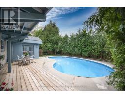 Welcome to this impeccably renovated family residence in the prestigious Romfield community of Thornhill-Markham. Offering 4+1 bedrooms and 4 bathrooms, this exceptional home sits on a mature, tree-lined street renowned for top-rated schools, parks, and convenient access to amenities. Thoughtfully designed for refined family living, it blends timeless elegance with modern upgrades. The chef-inspired kitchen features Caesarstone countertops, new cabinetry, and premium appliances, flowing effortlessly into open-concept living and dining spaces ideal for entertaining or daily life. A separate family room anchored by a wood-burning fireplace with walkout creates a warm, inviting gathering space. Upstairs, the bright primary retreat features a walk-in closet, private ensuite, and balcony overlooking the serene south-facing backyard. Designed for outdoor enjoyment, the private yard showcases a sparkling in-ground pool and expansive deck (2022), perfect for summer entertaining or quiet relaxation. The fully finished lower level offers a spacious recreation area, spa-inspired bath, and potential for an in-law suite. Additional highlights include main-floor laundry, double-car garage, parking for six vehicles, and no sidewalk maintenance in winter. Updates include roof (2013), furnace & A/C (2016), fence (2017), pool liner (2022), garage door (2023), driveway (2024), and new appliances (2024). Ideally located within walking distance to Thornlea Secondary School and close to shopping, transit, parks, and highways, this move-in ready home delivers refined comfort and exceptional value in one of Thornhill's most sought-after communities. (id:61594)
