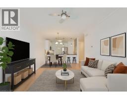 Welcome to highly sought-after Appleby Woods, where comfort, convenience, and modern style come together. This beautifully upgraded 1,272 sq. ft. condo offers an exceptional layout with 2 bedrooms, 2 bathrooms, and a versatile den/office that can easily serve as a third bedroom. Perfectly positioned just steps to shopping, dining, and everyday necessities, this home delivers both lifestyle and convenience. Freshly painted and filled with natural light, the suite features a bright open-concept design, high ceilings, and elegant crown moulding. The updated kitchen impresses with new white cabinetry, granite counters, counter seating, stylish glass tile backsplash and accent wall, ample storage, and stainless steel appliances, including a new stove. The spacious primary bedroom includes a walk-in closet, a private 3-piece ensuite, and direct access to the large south-facing balcony—an ideal space for relaxing or entertaining. The second bedroom features brand-new carpeting, while the generous den offers flexible use options. A well-appointed 4-piece main bath and a convenient in-suite laundry room add to the home’s appeal. This condo also includes 1 underground parking space and 1 locker for added convenience. Residents enjoy exceptional amenities: a party room, fitness center, residents’ lounge, and games room. Appleby Woods is proudly energy-efficient, featuring solar panels and geothermal heating/cooling, offering comfort and sustainability. Experience elevated condo living in a vibrant, well-maintained community—welcome home to Appleby Woods. (id:61594)