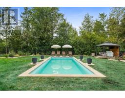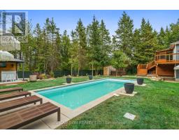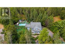 Welcome to 199 Blackberry Way, a dream residence where luxury, privacy, and nature harmonize on a beautifully landscaped 2-acre lot in the waterfront community of Dunrobin Shores. This beautifully maintained 4-bedroom, 4-bathroom family home offers a sun-drenched open-concept main floor featuring cathedral ceilings, a custom eat-in kitchen with a grand centre island, quartz countertops, stainless steel appliances, and abundant cabinetry. The elegant living room is anchored by a striking floor-to-ceiling high efficiency wood fireplace, ideal for cozy evenings, while the formal dining room, powder room, mudroom, laundry, dedicated office, and screened-in porch provide both comfort and functionality. Upstairs, the exquisite primary suite boasts a walk-in closet and a spa-inspired 5-piece ensuite, accompanied by two generously sized bedrooms with ample closet space and access to a stylish main bathroom. The walk-out lower level adds impressive versatility with a spacious family room/media room, games room, large fourth bedroom, 3-piece bath and storage. Step outside to your private outdoor oasis, complete with a saltwater inground pool, hot tub, sauna, custom flagstone patio, gazebo, and outdoor bar, perfect for entertaining or unwinding in total tranquility. An oversized 3-car garage adds convenience. Dunrobin Shores is a picturesque and highly sought-after waterfront community located just five minutes from the heart of Dunrobin in Ottawa's west end. The area showcases stunning sunrise and sunset views over the Gatineau Hills. Residents enjoy a peaceful lifestyle with quiet streets and a strong sense of community, where families and retirees alike. Despite its serene setting, Dunrobin Shores is only about 15 minutes from Kanata North, making it ideal for commuters working in the DND or Kanata tech park. Amenities such as grocery stores, pharmacies, schools, and medical services are easily accessible, offering the perfect balance of rural charm with convenience. (id:61594)