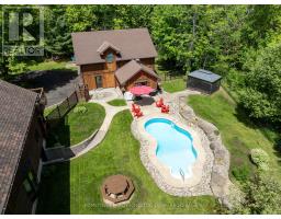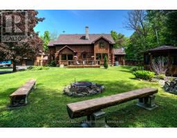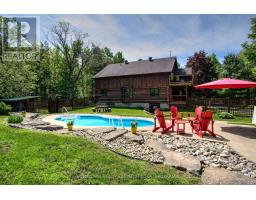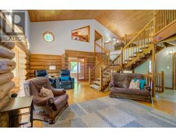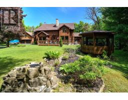 Welcome to Wildwood - a beautiful log home country retreat on 3.5 acres located in the Rideau Lakes area, only 10 minutes to Smiths Falls and equal distance between Kingston and Ottawa. Featuring kidney shaped inground pool, gorgeous landscaping, 2 screened in gazebos, firepit, upper & lower decks, plenty of places to relax & enjoy! Upon entry of this home you'll notice cathedral ceilings, 2 storey double sided stone fireplace, hardwood floors, country kitchen with walk in pantry, granite island, peaceful dining room, picturesque views from all the windows, 2 bedrooms & a bathroom on the main floor, Scarlett O'Hara staircase to the upper level with loft, primary suite with walk in closet & 4pc ensuite, a den with door to upper deck overlooking the pool & gardens. The lower level has plenty of space for rec room, storage, workshop & has multi generational living appeal or in law suite potential, with separate access to the backyard. There is also potential multi-generational use! The detached garage is amazing with room for 2 cars plus all the toys, radiant floor heating, hydro & water, another office space, mudroom area for the pool, and an upper loft that could be used as a games room, gym , studio or many other uses. (id:61594)