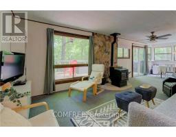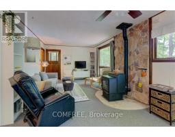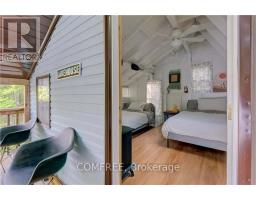 Welcome to this well-maintained classic cottage with desirable northeast exposure, tucked away  off a private lane that is maintained year-round. Nestled in a peaceful bay, this inviting retreat offers privacy, natural beauty, and a true sense of escape .Sitting slightly elevated, the property features a gentle path leading down to the waters edge, where a cozy lakeside Bunkie provides extra sleeping space right beside the floating dock, perfect for guests or quiet afternoons by the water. Enjoy outdoor living on the large, newer deck thats ideal for morning coffee or evening gatherings. There's ample parking for visitors and a fantastic lakeside fire pit for roasting marshmallows under the stars. Devil Lake is known for its excellent fishing, boating, and stunning Canadian Shield landscape. With direct access to the miles of unspoiled shoreline bordering Frontenac Provincial Park, outdoor adventure and serene relaxation await. (id:61594)