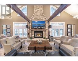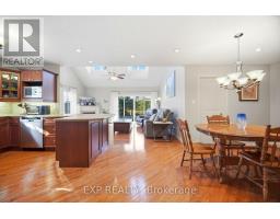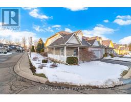 Welcome to 350 Doon Valley Drive, Suite 1G, an executive end-unit bungaloft in the prestigious Mill Club on the Grand River. Set in a serene, green enclave with access to scenic trails and conservation areas, this home is perfect for nature lovers and outdoor enthusiasts. At 2,150 sq ft, this home offers a thoughtful layout, hardwood floors, and plenty of windows that fill the space with natural light and comfort. The expansive living room features a soaring cathedral ceiling, fireplace, and walkout to the tranquil backyard deck with privacy given from trees and shrubs. The open-concept kitchen showcases stainless-steel appliances, elegant maple cabinetry, and a spacious breakfast bar, flowing seamlessly into the living and dining spaces. Three generously sized bedrooms each feature an ensuite, including a primary suite with cathedral ceilings, his-and-hers closets, and a spa-inspired soaker tub. The upper loft-style family room overlooks the living room, with an adjacent third bedroom completing the upper level. The main-floor laundry is the largest in the complex, with ample storage & built-in organizers. The 1,600 sq ft unfinished basement with bonus 7.6 ft ceiling height provides abundant space, including a rare large L-shaped cantina with two entrances and rough-in bathroom, ready to be customized for entertainment or additional living. Residents enjoy exclusive access to the Mill Clubhouse with lounge, library, gym, and billiards, along with community events and access to Grand River trails and Doon Valley Golf Course steps away. Low condo fees cover professional landscaping and snow removal, while a well-managed Condo Corporation maintains pristine grounds year-round. Quick access to HWY 401, shopping, dining, and transit completes this exceptional lifestyle opportunity. (id:61594)