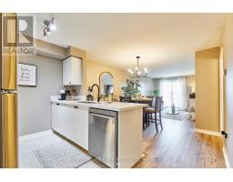 A beautifully maintained and spacious 2 bedroom, 2 bathroom condominium in the sought after Pringle Creek Community! Enjoy an updated stylish kitchen with double under-mounted sink, modern black faucet, stunning quartz counter top with extended breakfast bar. Offering plenty of counter space for hosting friends and family. Including all stainless steel appliances Bright and spacious open concept living/dining area features large windows filling the home with natural light. Upgraded premium laminate flooring in the living area, all new lighting and fixtures throughout this home. Walk-out balcony to a beautiful sunrise with updated outdoor flooring to enjoy through the seasons! A large primary bedroom features brand new carpet and walk-in closet with plenty of space. The primary bath includes updated storage cabinet and custom granite vanity with brush nickel faucet. The additional bedroom offers great space with lots of natural light currently used as a home office! Included in-unit stack-able washer and dryer, with extra space for storage Own and have the convenience of two car parking in an underground garage, with a private large storage all included with this home. Book your viewing today, this condo is complete. Located just minutes from top rated schools public transit, walking trails, pharmacy, shopping centers. Also close to Hwy 401, 407 and 412. (id:61594)
