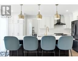 Welcome to 2 Caledonia Avenue where style, comfort, and location meet. This stunning 3+1 bedroom, 3 full bathroom home sits on a beautifully landscaped corner lot in a sought-after neighbourhood, and within walking distance to parks, schools, and daily amenities. Step inside to soaring vaulted ceilings and oversized windows that flood the open-concept living and dining area with natural light. Rich hardwood floors, upgraded lighting, and a custom staircase with a striking bannister elevate the space with warmth and elegance. At the heart of the home is a showstopping Winger kitchen, featuring quartz countertops, stylish backsplash, island with seating, and seamless sightlines into the cozy family room perfect for everyday living and entertaining. Upstairs, find three generous bedrooms including a serene primary suite with ensuite privileges to a spa-like bath complete with glass shower and contemporary finishes. The fully finished basement offers incredible versatility, with a spacious bedroom with ensuite access, full bath, and an expansive recreation room ideal for a home theatre, gym, or games room. Outside, enjoy the upgraded deck and private yard, perfect for relaxing or hosting summer BBQs. Additional highlights include elegant California shutters, fresh paint throughout, professionally cleaned carpets, and a range of tasteful upgrades that enhance every corner of the home. Move-in ready and impeccably maintained the perfect place to call home. (id:61594)