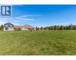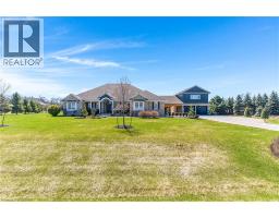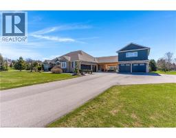 Welcome to one of St. George’s most scenic estate communities, where the approach is as impressive as the destination. Introducing 2 Cloverlea Crescent, an extensively upgraded custom bungalow situated on a beautifully landscaped 1.7-acre lot, offering almost 5,500 sq. ft. of thoughtfully designed living space that balances comfort, functionality, and timeless style. The interior showcases soaring 9’, 10’, and 11’ ceilings, a bright open-concept layout, and carefully selected finishes and lighting throughout. Statement feature walls and architectural details add character while maintaining a warm, cohesive feel. Ideal for entertaining or multi-generational living, the home features two fully equipped kitchens, each with generous island space, upgraded appliances, and efficient layouts designed for everyday use and hosting alike. The main level offers spacious principal rooms with excellent flow, along with direct access to the rear yard from both the kitchen and the primary bedroom. Outdoor living is equally inviting, with a covered front porch, a large rear patio, and space to relax or entertain while enjoying open views of the surrounding property. Designed with versatility in mind, the lower level includes a separate walk-up entrance, providing excellent in-law or extended family potential. With 4+ bedrooms, 4.5 bathrooms, two kitchens, and two laundry rooms, the layout allows for privacy and flexibility. Garage accommodations are equally impressive, featuring an attached heated 3-car garage and a recently built heated detached garage with space for up to four additional vehicles. The detached garage also includes a staircase leading to approximately 800 sq. ft. of finished upper-level space, suitable for a variety of uses. A rare opportunity to own a spacious, well-appointed estate property in a sought-after setting. (id:61594)