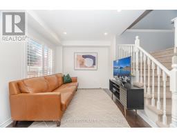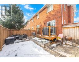 Beautiful freehold end-unit townhouse! Fully upgraded in Bronte Meadows! **Wider Lot 34.96 ft. The open-concept living/dining area is finished with California shutters. Features thoughtfully designed galley kitchen offers excellent efficiency, complete with stainless steel appliances and a clean, modern layout with open concept to a bright eat-In area with modern light fixures. The main floor features hardwood flooring in the living/dining area and ceramic tile in the entryway. Beautiful upgraded 2 pc bath on landing going to the basement. California shutters continue throughout both the main and second floors. Upstairs 3 bedrooms and a upgraded 4 pc main bathroom.The primary bedroom includes multiple windows, with a large walk-in closet. The finished basement offers a versatile recreation area with modern vinyl flooring and pot lighting ideal for a family room, home gym, office or play space. The home's thoughtful design extends to the fully fenced, private south facing backyard. A deck off the main level leads down to a beautiful patio, perfect for entertaining or enjoying your morning coffee. A second patio area provides the ideal setup for separate dining and lounging spaces. There's still plenty of green lawn to enjoy with 34.96 ft width creating a peaceful, balanced outdoor retreat. 1 car parking in garage & bylaw allows for parking over walkway (parking for 2 cars on the driveway) A small annual fee of approximately $150 covers insurance and maintenance for the community berm (a small outdoor park). (id:61594)
