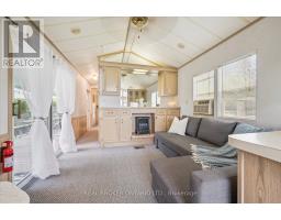 Welcome to 2 Elm Place in Phase 2 of Maple Leaf Acres - an exceptional lot location in the park, it sits peacefully in the northeast corner with no through traffic and no neighbours across. Watch beautiful sunrises through the large kitchen window or from the expansive deck, which features built in seating and a covered roof offering shade and shelter, and can easily be closed in to expand your living space. The primary bedroom has a queen size bed and large closets and the second bedroom features bunk beds, perfect for your children or guests. The lot is well manicured, and includes a large shed in excellent condition. Maple Leaf Acres is a well sought after park with a private boat launch and dock, an indoor pool and hot tub, an outdoor pool, recreation hall, playground, restaurant and other amenities. The park is extremely well managed with lots of organized activities. The season runs from May 1st to October 31st with winter use permitted on weekends and holidays. Belwood Lake is great for swimming, fishing, boating and water sports. Elora Cataract Trail adjacent to park. Easy drive from GTA. (id:61594)