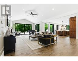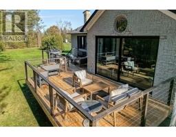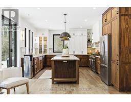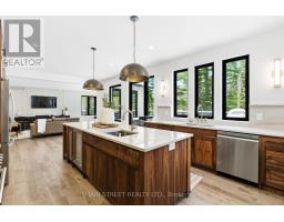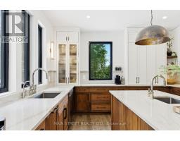 Welcome to 2 Gooseberry Lane, an exceptional turnkey estate offering modern luxury and remarkable flexibility, all on a coveted 1.5-acre lot in town. Completely reimagined inside and out, every surface of the home has been meticulously renovated. A large foyer introduces the vaulted living room with a custom "sliding glass wall" opening to the new deck. At the heart of the home is a custom kitchen, beautifully appointed with walnut cabinetry, quartzite countertops, an appliance garage, a professional-grade gas range, and handcrafted pendant lighting - 1 of 3 full kitchens thoughtfully integrated into the home. Hardwood flooring spans the main level, while the lower level features durable luxury laminate, complemented by two fireplaces that add warmth and ambiance. Every bathroom has been fully redesigned with elevated, modern finishes. The main floor master has a luxury ensuite and private deck. The home's versatile layout includes a beautifully finished in-law/guest suite, easily adaptable as a recreation or entertaining space. There is another separate entrance apartment featuring designer finishes - ideal for extended family or income potential. Two brand new laundry rooms enhance everyday convenience, alongside a top-of-the-line water treatment system. Outdoors, the meticulously transformed grounds are complete with a massive interlock patio and grand front staircase (2025), newly cleared trees, a sweeping lawn of fresh grass, and two new rear decks (2025). A new roof (2025) and new driveway (2025) complete this exceptional offering. Blending timeless craftsmanship with state-of-the-art upgrades in an unbeatable in-town location, 2 Gooseberry Lane delivers elevated living defined by comfort, elegance, and exceptional functionality. (id:61594)