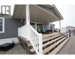 LOCATION, LOCATION, LOCATION. Live a maintenance free, waterfront lifestyle at an affordable price! Arguably the best location in the gated, Year Round Lifestyle Community of Sandusk Creek. Lake Erie sunrise & sunset views from the living, primary & guest bedrooms and the partially covered 34' x 10' deck. Custom features including a modern floor to ceiling gas fireplace and a stunning new ensuite with oversize shower, double vanity and walk in closet. Lots of creative built in storage solutions and all walls are drywalled. This 2 bedroom, 2 bath plus den/office (1377 sq. ft.) includes another 416 sq. ft. of space in the heated garage/man cave with even more storage space in the attached shed for a total of 1865 sq. ft. of living/storage space. Sale also includes an 8' x20' container for longer term and seasonal storage in the gated area (approx $400 annual fee). Generous stone patio surrounds the deck and extends all the way around the home. Land lease $520, Maintenance fee $300 (grass and snow). Community amenities, marine dockage (additional fee), inground pool, fenced dog park, nature trails, Kayak and canoe racks, social activities and more. One of the rare waterfront and one of the largest lots in the community, steps to the pool and clubhouse. 15 minutes to Port Dover and 40 minutes to Hamilton airport. Enjoy nature at your doorstep. THIS IS THE ONE YOU HAVE BEEN WAITING FOR! (id:61594)