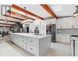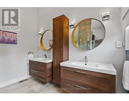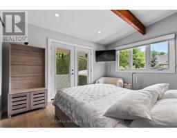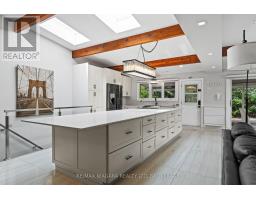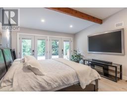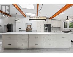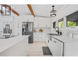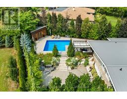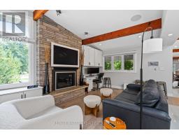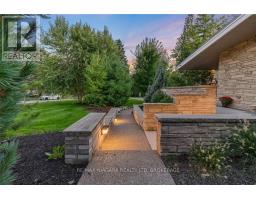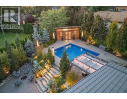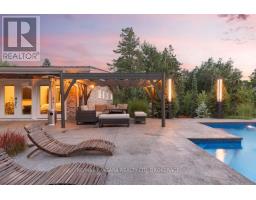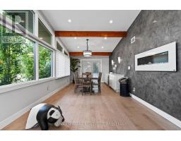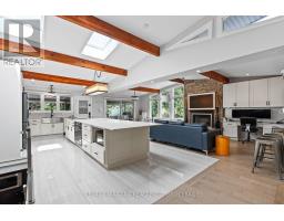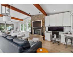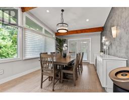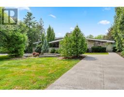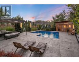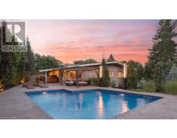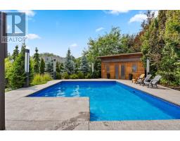 Estate style lot surrounded by mature trees in the gorgeous Bevan Heights location featuring 3 bedrooms with a potential 4th, 5 bathrooms, a Boldt saltwater heated pool, outdoor poolhouse with bathroom, metal roof, heated garage, 200amp service, Generac generator, and EV charger. This exceptional estatae featuring 3,000 sq/ft of finished living space is offering refined living with the charm and tranquility of a Muskoka retreat. Surrounded by mature trees and lush, professionally landscaped grounds, the property is a true blend of elegance, privacy, and natural beauty. Inside, the open-concept layout features vaulted ceilings with exposed beams, engineered hardwood, and heated kitchen tiles. The gourmet kitchen boasts Kraft Maid cabinetry, an oversized Caesarstone quartz island, premium appliances, and skylights that flood the space with natural light. The living room is anchored by a floor-to-ceiling stone gas fireplace, while custom built-ins provide extra storage or a dedicated office space. The dining room is elevated with a Venetian feature wall and an electric fireplace.Upstairs, the primary suite has French doors to a covered porch overlooking the backyard, a spa-like 4-piece ensuite with heated towel racks, and a walk-in closet. The second bedroom offers its own ensuite and a private covered balcony with garden views.The lower level includes a large family room witha gas fireplace, a third bedroom with a 3-piece bath, and an office with a kitchen rough-in, ideal for an in-law suite. Outside, enjoy the in-ground saltwater pool, cedar cabana with 2-piece bath and outdoor shower, pergola, hot tub, and fire pit. The smart system controls lighting and music, while the irrigation system keeps gardens lush. The heated garage offers parking plus space for a workshop or storage. This home blends modern luxury, cottage charm, and privacy, an extraordinary place to call home. (id:61594)