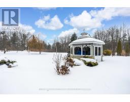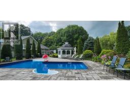 RESORT-INSPIRED ESTATE LIVING ON 2.2 ACRES WITH A BACKYARD BEYOND COMPARE PLUS SHARED OWNERSHIP OF A 13.37-ACRE PARCEL BEHIND! Unveiling 2 Mills Circle, a resort-inspired estate on 2.2 acres with a backyard designed to astonish. Estate-style living meets resort luxury with gardens that frame an inground saltwater pool with a newer liner, surrounded by extensive stonework, complemented by a poolside building with a 3-piece bathroom, a pergola, and a gazebo with a sitting area. Multiple decks create spaces for lavish entertaining or private escapes, all set within an atmosphere of refined seclusion. Adding to the exclusivity, this property also includes shared ownership of a 13.37-acre parcel of land located behind the residence. The home presents hardwood floors, pot lights, crown moulding, wainscotting, and freshly painted walls. An elegant kitchen showcases white cabinetry, granite counters, a centre island with a second sink, tile backsplash, and a walkout to the expansive deck overlooking the grounds. The primary suite impresses with a walk-in closet, 3-piece ensuite, and a private balcony, while the lower level features a family room with a walkout and a gas fireplace, a mudroom, a fourth bedroom, and a powder room. A finished basement with a sprawling rec room anchored by a second fireplace delivers an impressive setting for everything from quiet evenings to lively occasions. Completed by a triple-car garage with inside entry, renovated bathrooms, and a water softener with an iron filter, this residence is both elegant and practical. Enjoy proximity to the Barrie Sports Complex, Snow Valley Ski Resort, golf courses, scenic trails, and Bayfield Street's shopping and dining. (id:61594)