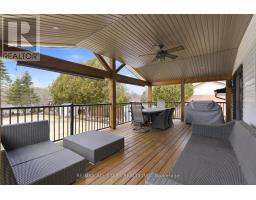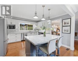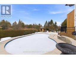 Welcome home to your Greenbank retreat! This charming 4-bedroom bungalow sits proudly on a spacious corner lot in one of Greenbank's most peaceful family neighbourhoods. Designed with comfort and connection in mind, it offers bright open-concept living, thoughtful updates, and a truly stunning backyard oasis. Step outside and discover a private paradise, a sparkling in-ground pool surrounded by lush perennial gardens, a soothing custom-built stream, a multi-tier covered deck, and cozy patio spaces perfect for family barbecues, relaxing afternoons, or evenings by the fire. Every detail of this yard was made for enjoyment and togetherness. Inside, the open main level features a welcoming living and dining area filled with natural light, along with a stylish kitchen featuring quartz counters, modern finishes, and a centre island that's perfect for family meals or entertaining. The primary bedroom offers direct access to the deck and pool, creating the perfect blend of indoor and outdoor living. The finished lower level adds even more versatility with a comfortable family room, gas fireplace, full bathroom, and extra space ideal for guests, recreation, or a home gym. With beautiful landscaping, a private setting, and close proximity to schools, parks, and trails, this home offers the best of country charm and small-town community, a place where families can gather, grow, and make lasting memories. Note - property is serviced by town well. (id:61594)