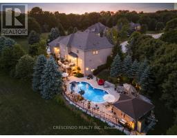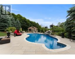 Welcome To This Exquisite Estate In The Prestigious Laskay Community Of King City, Situated On A Stunning One-Acre Premium Lot End Of A Private Cul-De-Sac. This Custom-Built Home Offers 4 Bedrooms, 5 Bathrooms, Over 7,000 Sq. Ft. Of Beautifully Finished Living Space Across Main And Lower Levels. Designed For Elegance, Comfort, And Privacy, Featuring A Resort-Style Backyard Surrounded By Mature Trees And Lush Landscaping, Creating A Tranquil Retreat Perfect For Relaxing Or Entertaining Under The Stars. A Grand Entrance Welcomes You With A Prominent Water Fountain & 100+ Ft Driveway. Customizable Gemstone Lighting Enhances The Exterior After Dusk. Inside, A Soaring 24-Ft Foyer And Modern Circular Staircase Impress. The Main Level Showcases A Spacious Layout W/ Stone & Hardwood Floors, Large Windows For Natural Light. The Chefs Kitchen Includes Granite Counters, Custom Cabinetry, And Premium Appliances Combined With A Walkout Balcony With Gas BBQ Overlooking The Private Backyard. Open To Kitchen Is A Cozy Family Room With Gas Fireplace. The Hall Connects A Large Laundry Room And A 3-Car Garage With 12-Ft Ceilings Including Car Lift. The Lower Level Is An Entertainers Dream With An Open Layout, Full Kitchen W/ Island, Spacious Living Area, Private Salon, And Home Theatre Featuring 12 Recliners And 7-Speaker Surround Sound. Walkout Access Leads To The Backyard Retreat With Multiple Seating Areas, A 20 X 40 Saltwater Pool, Remote-Controlled Waterfall & Lighting, Pool Cabana With Bar, Shutters, & Outdoor Shower. Upstairs, The Grand Landing Opens To A Luxurious Primary Suite With Fireplace, Dual Walk-In Closets W/ Custom Built-Ins, Spa-Inspired Ensuite With Jacuzzi, Oversized Shower, And Vaulted Ceiling. Prime Location Minutes From Highway 400, Plenty Of Space On Property To Add More Garages Or Increase Home's Square Footage If Desired. (id:61594)
