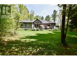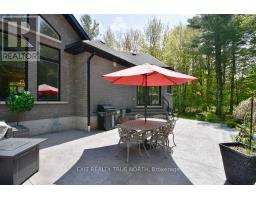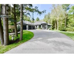 Rarely offered, gorgeous custom bungalow on super exclusive Sycamore Circle. This 2,300+ square foot home sits on a very private, nearly 2 acre lot. This stunning home has 3 bedrooms and 2.1 bathrooms including spacious primary with large walk-in closet and lavish ensuite. The main floor also features a stylish custom kitchen with built-in appliances, Cambria stone countertops and gorgeous breakfast nook surrounded by windows and looking out to the manicured grounds. Triple car garage with separate entrance to basement. Backyard is a private sanctuary with trails and surrounded by mature trees. Equipped with natural gas and Bell fibre optics. Just minutes to Barrie, Elmvale, Wasaga Beach and Highway 400. (id:61594)