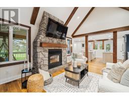 Gorgeous Custom Bungaloft on 1.16 Acres in Prestigious Bowmanville Neighbourhood. Welcome to this exceptional, custom-built bungaloft, located on a court and serviced by natural gas. From the moment you arrive, the attention to detail is unmistakable. The exterior showcases timeless craftsmanship with custom stonework, copper accents, marble sills, and soaring rooflines that combine to create stunning curb appeal. Step inside to discover a bright and airy open-concept layout that perfectly balances elegance with comfort. The main living space features solid hardwood floors, recessed lighting, and a great room with cathedral ceiling and nat gas fireplace. The freshly renovated gourmet kitchen is a true centerpiece, complete with full-height glass cabinetry, Corian countertops, walk-in pantry, and stainless steel appliances. A sunny breakfast area opens to a charming sunroom, ideal for your morning coffee or a quiet retreat. Main floor also includes a beautifully updated laundry/mudroom and well-appointed bedrooms, each offering private or shared access to ensuite bathrooms for optimal convenience. Upstairs, the spacious loft is a standout feature, offering endless flexibility. With vaulted 10-foot ceilings, a skylight, gleaming hardwood floors, natural gas fireplace, and its own 3-piece ensuite. This large space is perfect as a family room, home office, or private in-law suite! Property offers ample space for children to play, room to build a shop or pool, gardening, or simply enjoying the outdoors. The covered patio provides a perfect spot for year-round entertaining. Freshly finished basement adds custom glass office, Wet bar, Engineered hardwood flooring, huge bedroom, and fitness space. Located just minutes from Bowmanville's vibrant urban center, two golf courses, and the Bowmanville Valley Conservation Area, this home offers the ideal balance of serenity and accessibility. Quick access to Highways 401 and 407/418. Roof 2018, Furnaces 2016, A/C 2019. (id:61594)