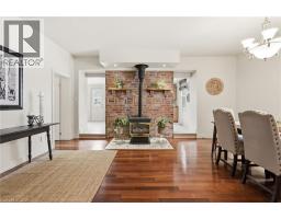 Welcome to 2 Union Street, this charming bungalow is ideally located in the heart of Waterdown, just steps from local shops, restaurants, and pubs. Beautifully landscaped with stunning curb appeal and stylish stucco exterior, this home offers warmth, character, and convenience in one inviting package. Step inside to a cozy family room featuring laminate flooring and soaring ceilings, creating a bright and welcoming space. Just off this area is a beautifully finished three-piece bathroom complete with a walk-in glass shower and cultured marble finishes, as well as convenient main-floor stacked laundry tucked neatly behind closed doors. A bedroom located off this space provides flexibility for guests, a home office, or main-floor living. Continue through to the spacious dining room, highlighted by a charming brick fireplace wall that adds character and warmth — perfect for entertaining. Two sizeable bedrooms are located off this area, offering comfortable accommodations for family or visitors. At the rear of the home, overlooking the stunning fully landscaped backyard, you’ll find a large eat-in kitchen featuring oak cabinetry, granite countertops, and stainless-steel appliances. Step outside to enjoy multiple deck areas ideal for entertaining or relaxing while taking in the private backyard setting. The property also includes a large greenhouse and shed, perfect for gardening enthusiasts or additional storage. A wonderful opportunity to enjoy bungalow living in one of Waterdown’s most walkable and desirable locations. Don’t be TOO LATE*! *REG TM. RSA. (id:61594)